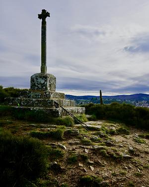 Large cross on pedestal outside of Saugues on the Via Podiensis.